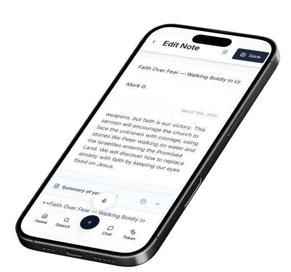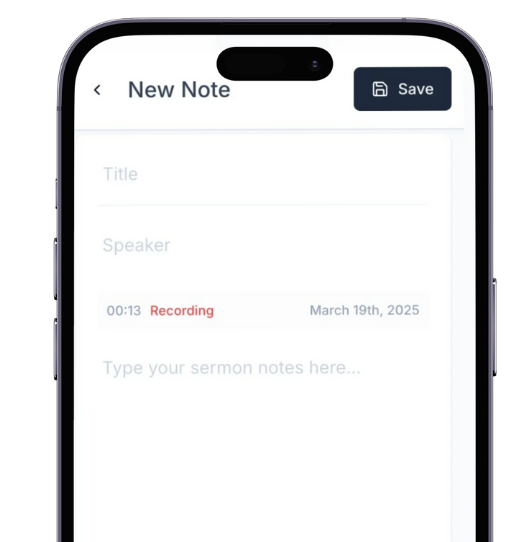 Notegain listens, transcribes, and transforms every sermon into beautiful notes — always with you, helping you reflect anytime, anywhere.